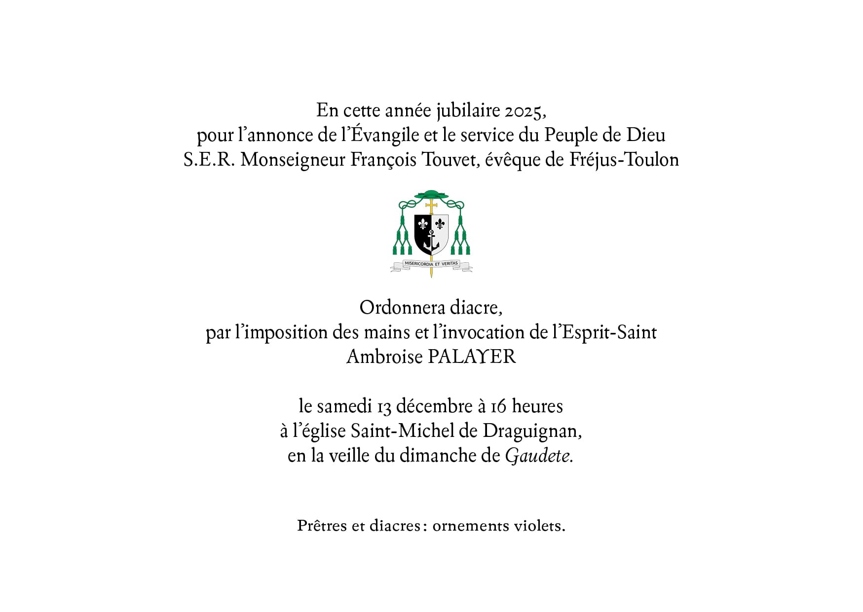 Samedi 13 décembre : ordination d’Ambroise Palayer