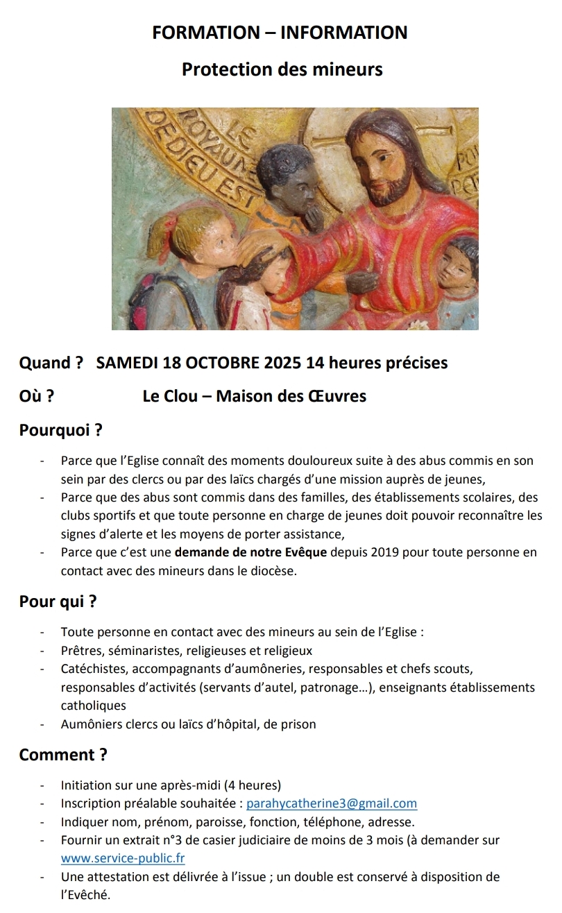 Samedi 18 octobre: formation/information protection des mineurs